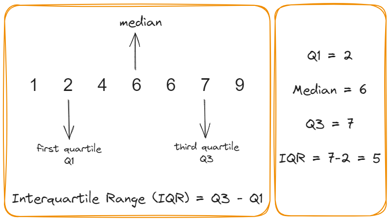 | Mean | (2+4+6+6+22)/5 | 8 |