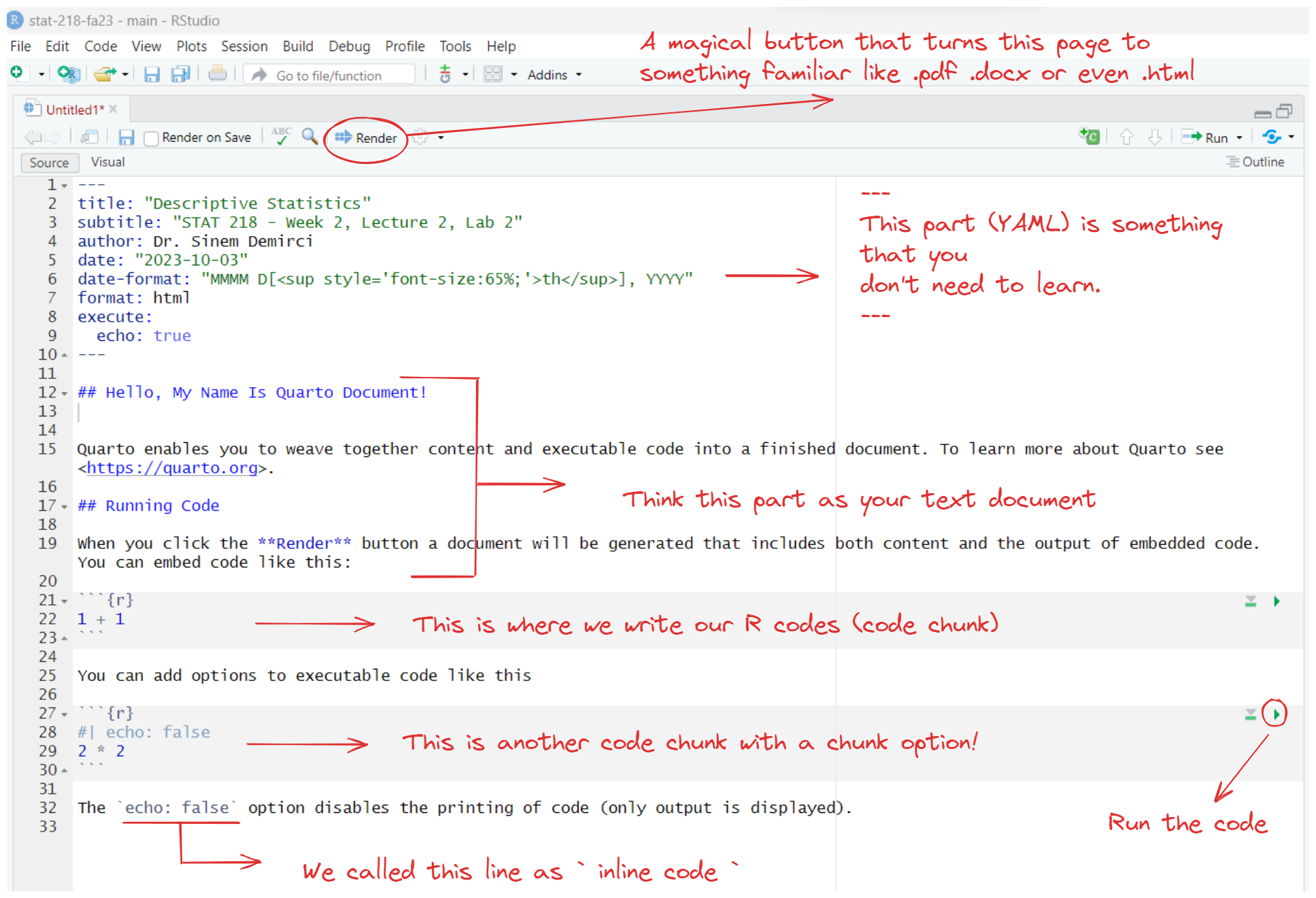 File > New File > Quarto DocumentThe library() function in R is like opening a toolbox. Imagine you have a toolbox filled with different tools, and each tool helps you do a specific job. Similarly, in R, a library is like a toolbox that contains specialized tools (packages) for specific tasks.
