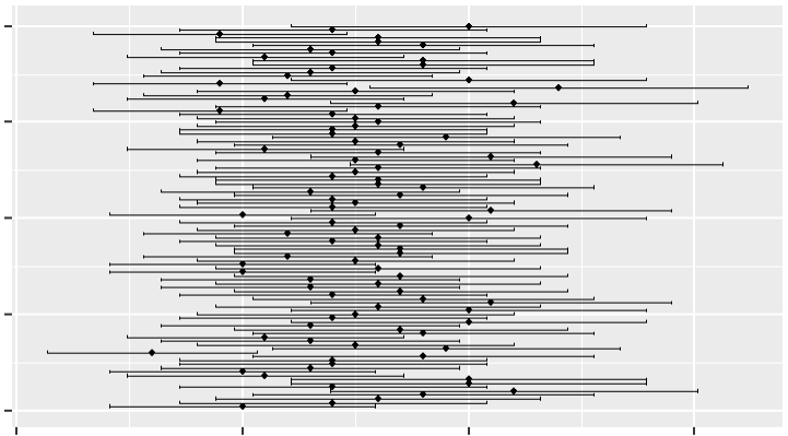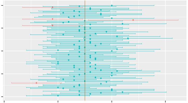 If we calculate confidence intervals for each of these 100 samples, we will find that around 95% of these intervals capture the true population mean.