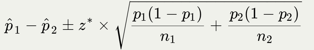 When these conditions/assumptions are met, then the standard error of \(\hat{p_1} - \hat{p_2}\) is equal to